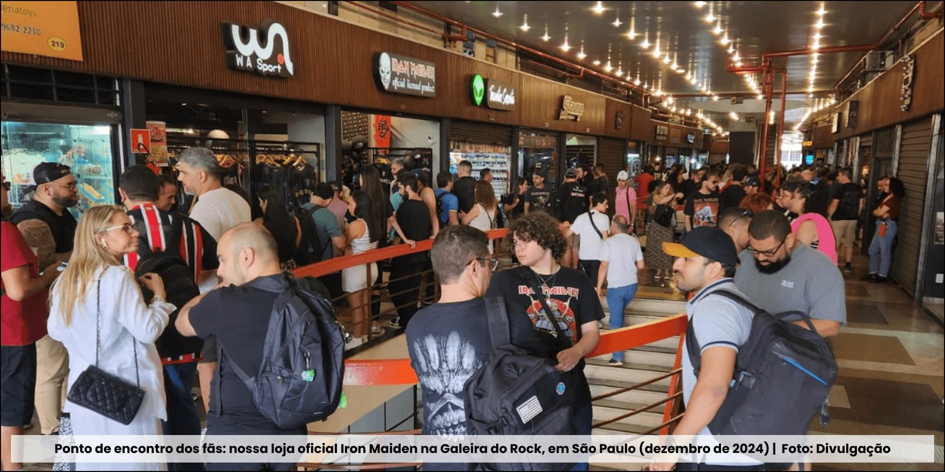 No final de 2020, nós nem imaginávamos todas as surpresas que o caminho do licenciamento nos reservava. Em novembro, abrimos uma loja oficial com produtos do Iron Maiden na Galeria do Rock, em São Paulo. O centro comercial, construído na década de 60, é conhecido por abrigar, além de lojas, uma cultura pop rock urbana que faz do local uma parada obrigatória para quem é fã de rock, heavy metal.
