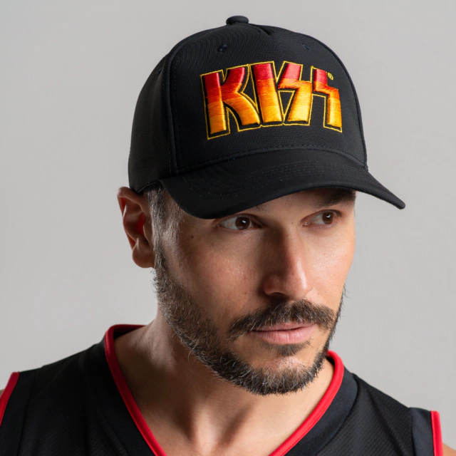 Confira os detalhes sobre o boné Kiss Logo Flame – Preto