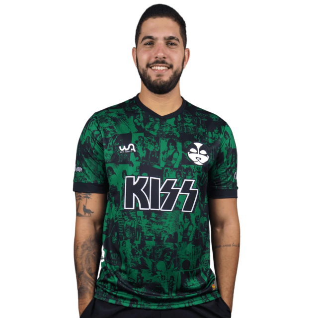 A camisa de futebol inspirada no baterista The Catman tem o verde característico do personagem em destaque. Em preto, tanto na frente quanto nas costas surgem dezenas de imagens sublimadas. E fica o desafio para os fãs: achar as fotos que são inéditas e que incluimos para destacar os momentos de Catman ao longo de toda a carreira do Kiss.