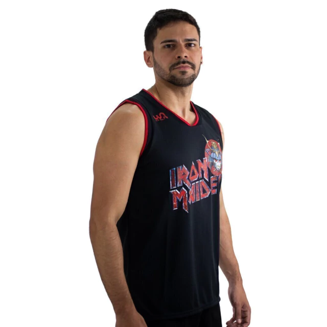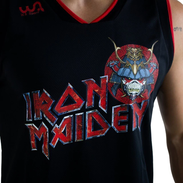 A linha esportiva Iron Maiden W A Sport ganha um reforço que vale uma cesta de três pontos: uma camiseta regata de basquete que traz a temática e cores do álbum Senjutsu, lançado pela banda em 2021. O item foi criado não só para a prática esportiva como também para que os fãs posam mostrar seu amor pelo heavy metal do Maiden inclusive nos dias mais quentes.