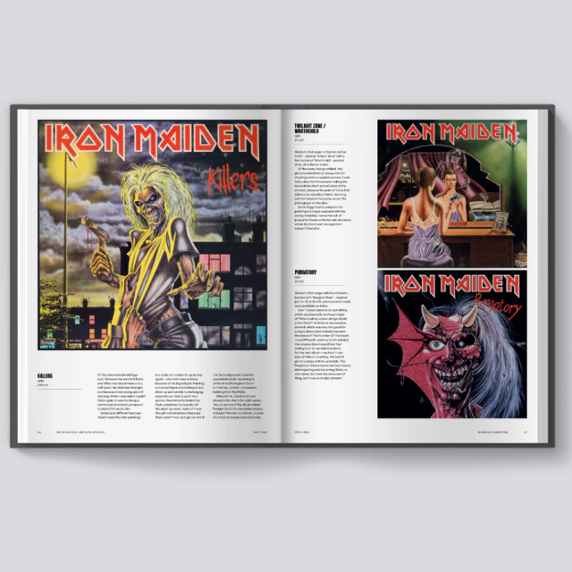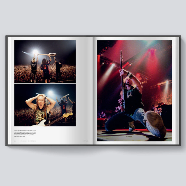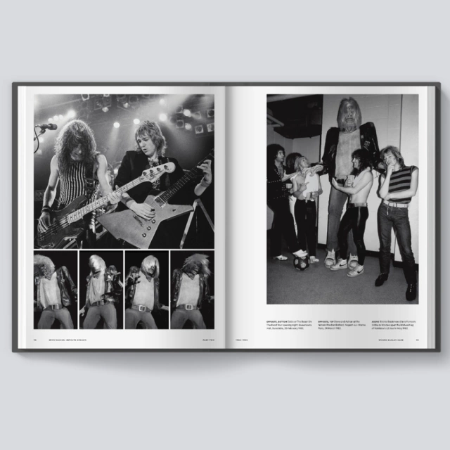 O livro também narra a evolução do icônico mascote Eddie, incluindo esboços e artes originais, além de documentar as incríveis produções de palco e extensas turnês da banda, como a Somewhere Back in Time Tour de 2008. Nessa turnê histórica, a banda fretou seu próprio Boeing 757 - Ed Force One - pilotado pelo vocalista Bruce Dickinson, que voou 80.000 quilômetros ao redor do mundo em 45 dias. A turnê ganhou destaque na mídia global e foi tema do premiado filme Flight 666.